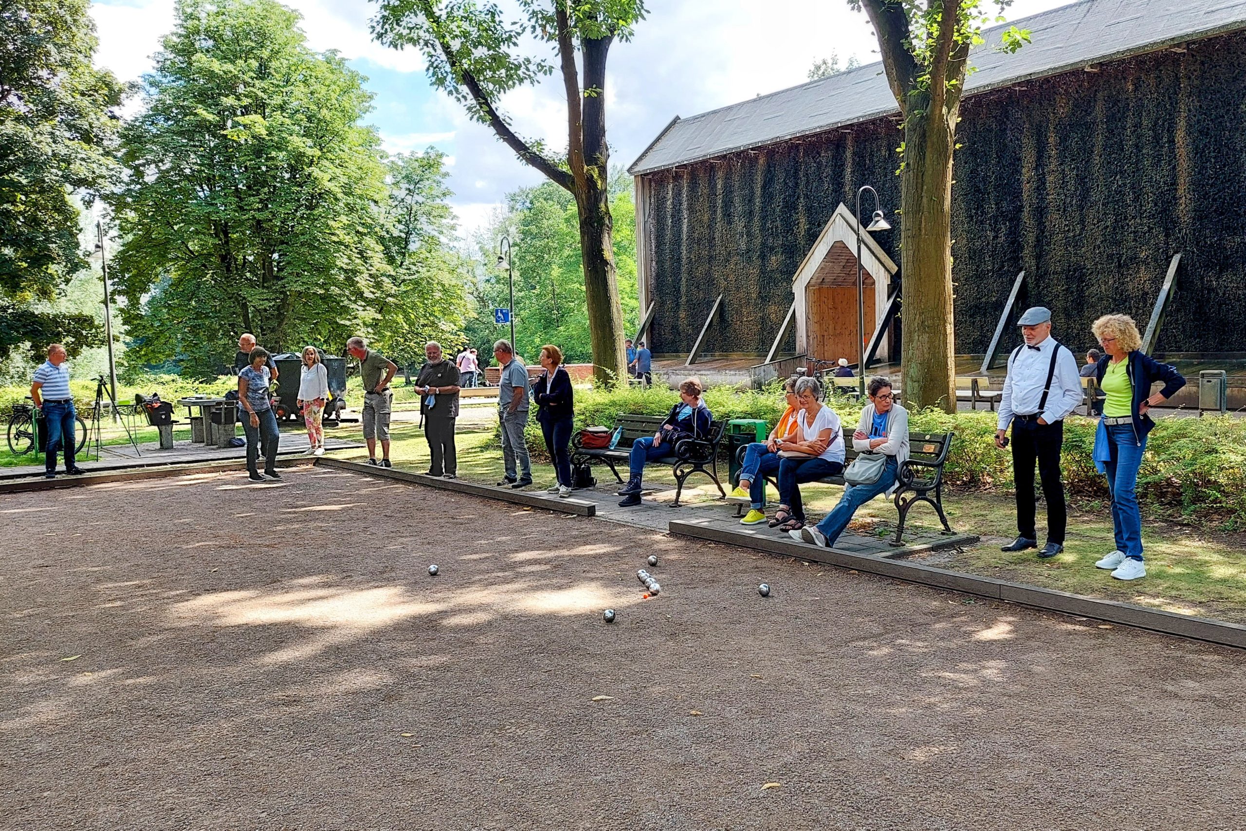 Nach der Auslosung hatten die Mitglieder der Teams ausreichend Zeit sich näher kennenzulernen, sich taktisch auf die Spiele vorzubereiten und vor dem Turnierstart noch die ein oder andere Trainingseinheit zu absolvieren. Einige Spieler/innen wurden nach der Auslosung häufiger – manche behaupten sogar fast täglich – auf der Boule-Bahn angetroffen! In Teilnehmerkreisen heftig umstritten war allerdings die Frage, ob Boule-Training überhaupt etwas bringt oder man nicht besser seiner Tagesform vertrauen sollte – eine Frage, die leider nicht abschließend geklärt werden konnte.