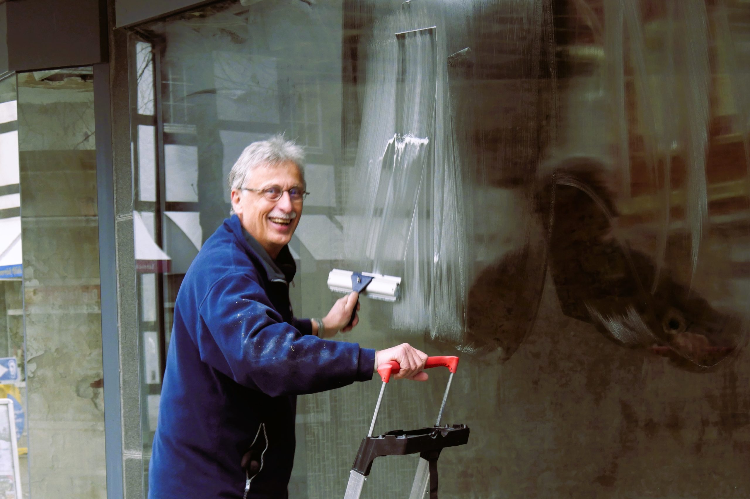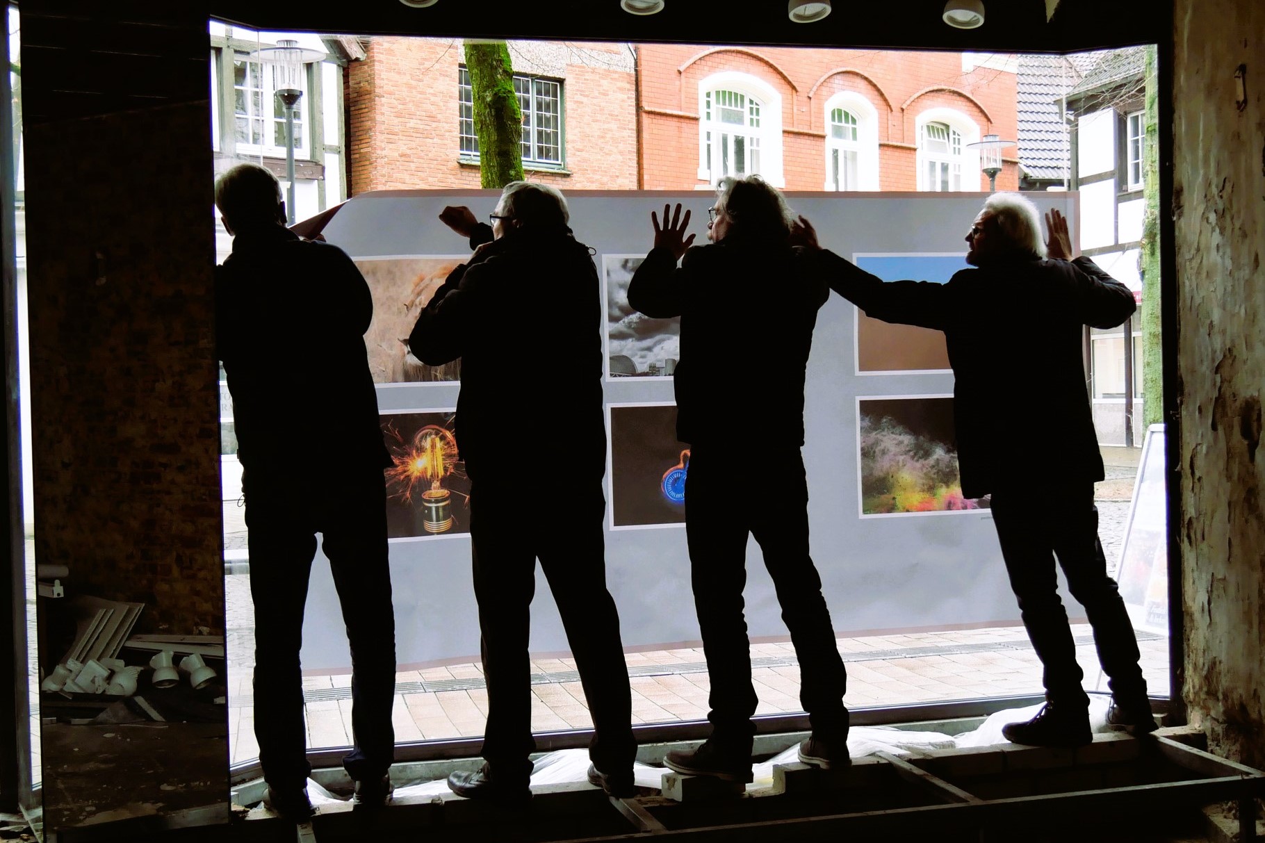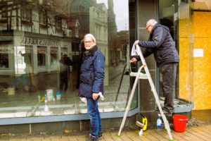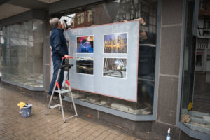 Making of ... Fotoausstellung der ZWAR-Fotogruppe Ladenlokal vor der Ausstellung Zum Start ist Schaufensterputzen angesagt Streifenfrei geht anders! Schaufenster geputzt - trotzdem öde! Aufspannen der Banner Mit vereinten Kräften - waagerecht und faltenfrei Fast geschafft! Das erste Banner ist gespannt - erst einmal Pause! Danke, Frau Brocke! Danke, Herr Neijenhoff! Zurück zur Fotogruppe